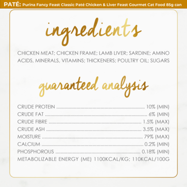 FANCY FEAST Classic Paté recipes are thoughtfully prepared with hand selected ingredients and culinary craftsmanship right down to the smallest detail.