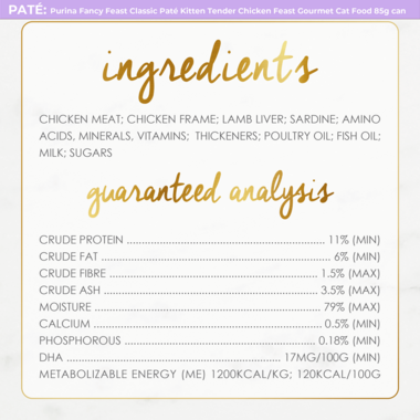 - A protein-rich meal specially curated with real, high quality chicken finely ground into a luscious and velvety paté-like texture that is irresistibly soft and smooth.